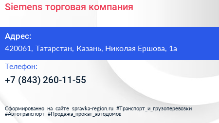 Siemens, торговая компания по адресу 420061, Татарстан, Казань, Николая Ершова, 1а в дальнейшем Организация, размещена в следующих категориях: