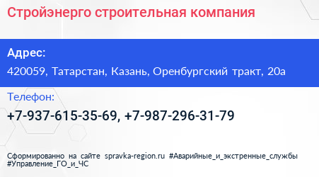 Стройэнерго, строительная компания по адресу 420059, Татарстан, Казань, Оренбургский тракт, 20а в дальнейшем Организация, размещена в следующих категориях: