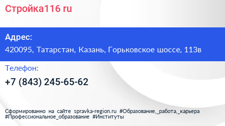 Стройка116.ru по адресу 420095, Татарстан, Казань, Горьковское шоссе, 113в в дальнейшем Организация, размещена в следующих категориях: