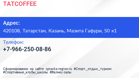 TATCOFFEE по адресу 420108, Татарстан, Казань, Мазита Гафури, 50 к1 в дальнейшем Организация, размещена в следующих категориях: