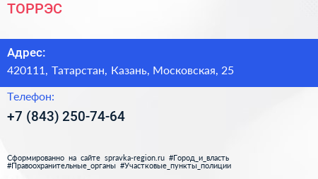 ТОРРЭС по адресу 420111, Татарстан, Казань, Московская, 25 в дальнейшем Организация, размещена в следующих категориях: