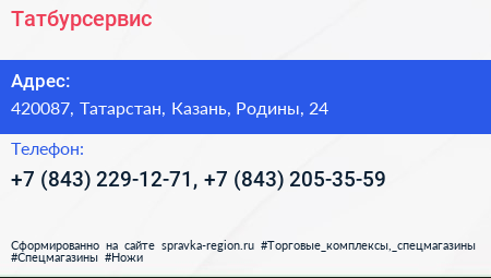 Татбурсервис по адресу 420087, Татарстан, Казань, Родины, 24 в дальнейшем Организация, размещена в следующих категориях: