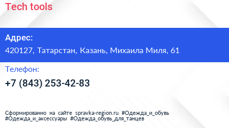 Tech-tools по адресу 420127, Татарстан, Казань, Михаила Миля, 61 в дальнейшем Организация, размещена в следующих категориях: