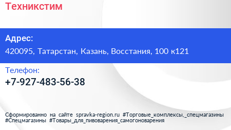 Техникстим по адресу 420095, Татарстан, Казань, Восстания, 100 к121 в дальнейшем Организация, размещена в следующих категориях: