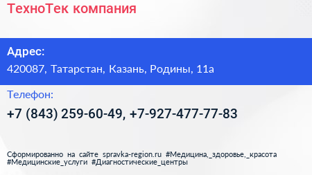 ТехноТек, компания по адресу 420087, Татарстан, Казань, Родины, 11а в дальнейшем Организация, размещена в следующих категориях: