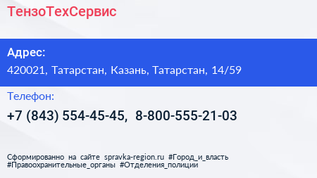 ТензоТехСервис по адресу 420021, Татарстан, Казань, Татарстан, 14/59 в дальнейшем Организация, размещена в следующих категориях: