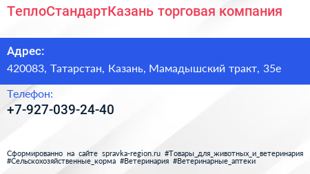 ТеплоСтандартКазань, торговая компания по адресу 420083, Татарстан, Казань, Мамадышский тракт, 35е в дальнейшем Организация, размещена в следующих категориях: