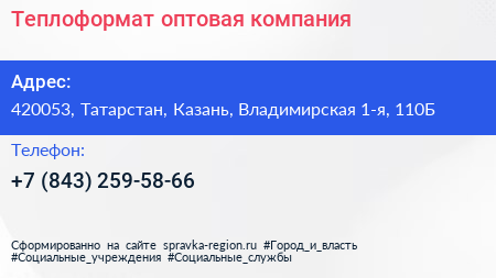 Теплоформат, оптовая компания по адресу 420053, Татарстан, Казань, Владимирская 1-я, 110Б в дальнейшем Организация, размещена в следующих категориях: