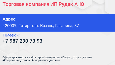 Торговая компания, ИП Рудак А.Ю. по адресу 420039, Татарстан, Казань, Гагарина, 87 в дальнейшем Организация, размещена в следующих категориях:
