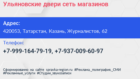 Ульяновские двери, сеть магазинов по адресу 420053, Татарстан, Казань, Журналистов, 62 в дальнейшем Организация, размещена в следующих категориях: