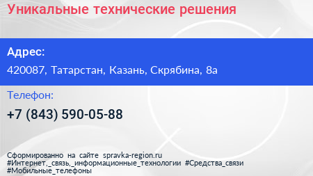 Уникальные технические решения по адресу 420087, Татарстан, Казань, Скрябина, 8а в дальнейшем Организация, размещена в следующих категориях: