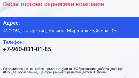 Весы, торгово-сервисная компания по адресу 420094, Татарстан, Казань, Маршала Чуйкова, 15 в дальнейшем Организация, размещена в следующих категориях: