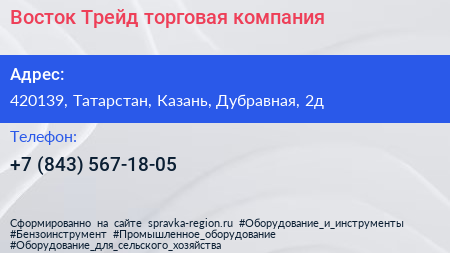 Восток-Трейд, торговая компания по адресу 420139, Татарстан, Казань, Дубравная, 2д в дальнейшем Организация, размещена в следующих категориях: