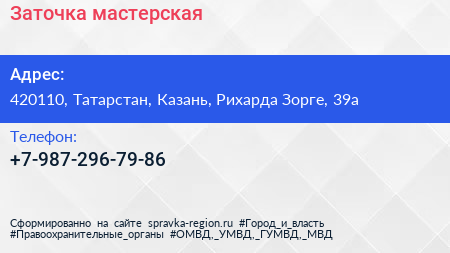 Заточка, мастерская по адресу 420110, Татарстан, Казань, Рихарда Зорге, 39а в дальнейшем Организация, размещена в следующих категориях: