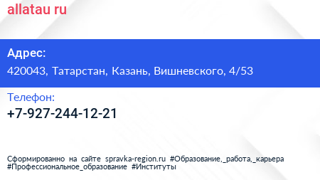 allatau.ru по адресу 420043, Татарстан, Казань, Вишневского, 4/53 в дальнейшем Организация, размещена в следующих категориях: