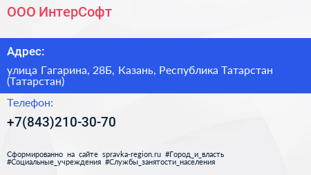 ООО ИнтерСофт по адресу улица Гагарина, 28Б, Казань, Республика Татарстан (Татарстан) в дальнейшем Организация, размещена в следующих категориях: