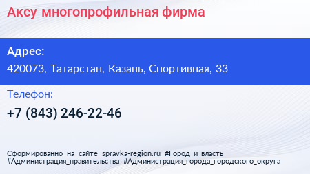 Аксу, многопрофильная фирма по адресу 420073, Татарстан, Казань, Спортивная, 33 в дальнейшем Организация, размещена в следующих категориях: