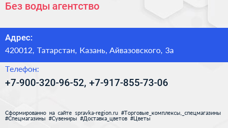 Без воды, агентство по адресу 420012, Татарстан, Казань, Айвазовского, 3а в дальнейшем Организация, размещена в следующих категориях: