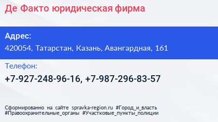 Де-Факто, юридическая фирма по адресу 420054, Татарстан, Казань, Авангардная, 161 в дальнейшем Организация, размещена в следующих категориях: