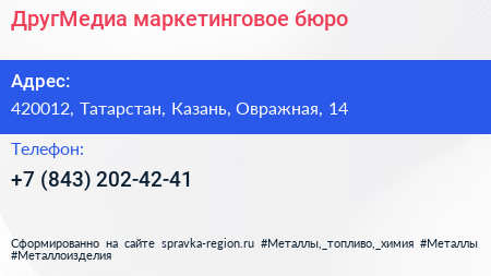 ДругМедиа, маркетинговое бюро по адресу 420012, Татарстан, Казань, Овражная, 14 в дальнейшем Организация, размещена в следующих категориях: