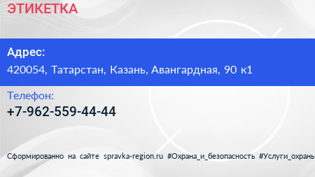 ЭТИКЕТКА по адресу 420054, Татарстан, Казань, Авангардная, 90 к1 в дальнейшем Организация, размещена в следующих категориях: