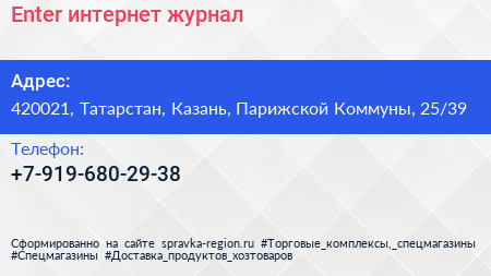 Enter, интернет-журнал по адресу 420021, Татарстан, Казань, Парижской Коммуны, 25/39 в дальнейшем Организация, размещена в следующих категориях: