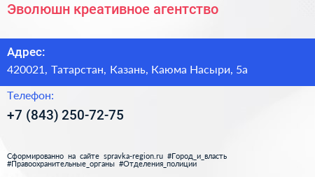 Эволюшн, креативное агентство по адресу 420021, Татарстан, Казань, Каюма Насыри, 5а в дальнейшем Организация, размещена в следующих категориях: