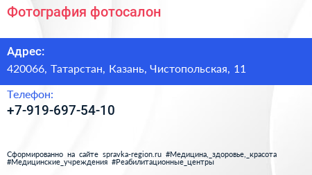Фотография, фотосалон по адресу 420066, Татарстан, Казань, Чистопольская, 11 в дальнейшем Организация, размещена в следующих категориях: