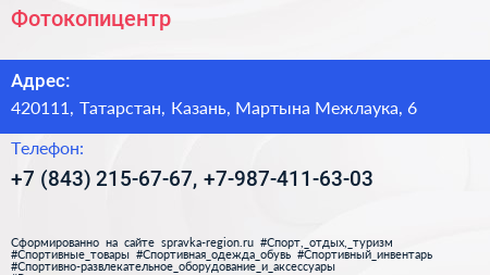 Фотокопицентр по адресу 420111, Татарстан, Казань, Мартына Межлаука, 6 в дальнейшем Организация, размещена в следующих категориях:
