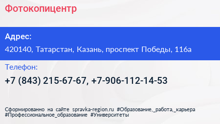 Фотокопицентр по адресу 420140, Татарстан, Казань, проспект Победы, 116а в дальнейшем Организация, размещена в следующих категориях: