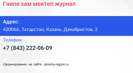 Гаиле хам мектеп, журнал по адресу 420066, Татарстан, Казань, Декабристов, 2 в дальнейшем Организация, размещена в следующих категориях: