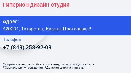 Гиперион, дизайн-студия по адресу 420034, Татарстан, Казань, Проточная, 8 в дальнейшем Организация, размещена в следующих категориях: