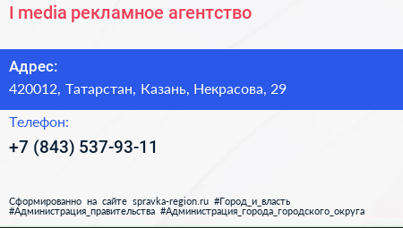 I-media, рекламное агентство по адресу 420012, Татарстан, Казань, Некрасова, 29 в дальнейшем Организация, размещена в следующих категориях: