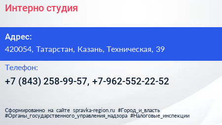 Интерно, студия по адресу 420054, Татарстан, Казань, Техническая, 39 в дальнейшем Организация, размещена в следующих категориях: