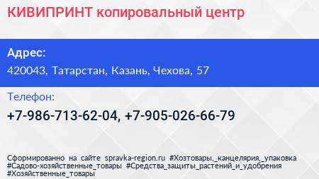 КИВИПРИНТ, копировальный центр по адресу 420043, Татарстан, Казань, Чехова, 57 в дальнейшем Организация, размещена в следующих категориях: