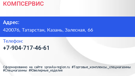 КОМПСЕРВИС по адресу 420076, Татарстан, Казань, Залесная, 66 в дальнейшем Организация, размещена в следующих категориях: