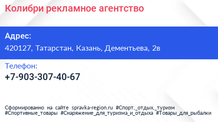 Колибри, рекламное агентство по адресу 420127, Татарстан, Казань, Дементьева, 2в в дальнейшем Организация, размещена в следующих категориях: