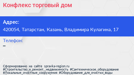 Конфлекс, торговый дом по адресу 420054, Татарстан, Казань, Владимира Кулагина, 17 в дальнейшем Организация, размещена в следующих категориях: