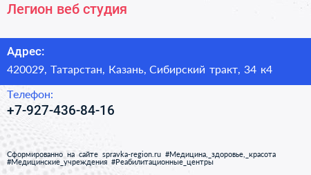 Легион, веб-студия по адресу 420029, Татарстан, Казань, Сибирский тракт, 34 к4 в дальнейшем Организация, размещена в следующих категориях: