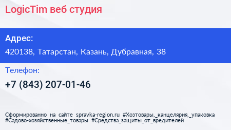 LogicTim, веб-студия по адресу 420138, Татарстан, Казань, Дубравная, 38 в дальнейшем Организация, размещена в следующих категориях: