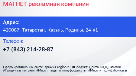 МАГНЕТ, рекламная компания по адресу 420087, Татарстан, Казань, Родины, 24 к1 в дальнейшем Организация, размещена в следующих категориях: