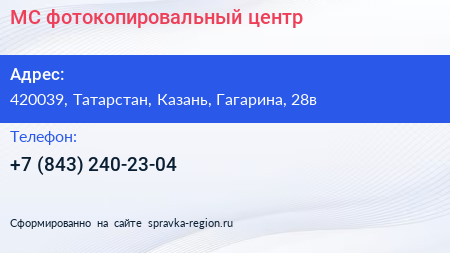 МС, фотокопировальный центр по адресу 420039, Татарстан, Казань, Гагарина, 28в в дальнейшем Организация, размещена в следующих категориях: