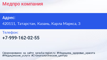 Медпро, компания по адресу 420111, Татарстан, Казань, Карла Маркса, 3 в дальнейшем Организация, размещена в следующих категориях: