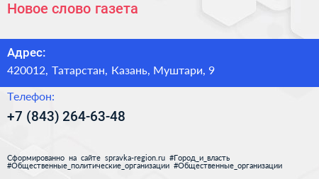 Новое слово, газета по адресу 420012, Татарстан, Казань, Муштари, 9 в дальнейшем Организация, размещена в следующих категориях: