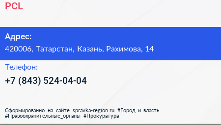 PCL по адресу 420006, Татарстан, Казань, Рахимова, 14 в дальнейшем Организация, размещена в следующих категориях: