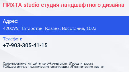 ПИХТА studio, студия ландшафтного дизайна по адресу 420095, Татарстан, Казань, Восстания, 102а в дальнейшем Организация, размещена в следующих категориях: