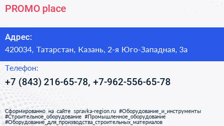 PROMO place по адресу 420034, Татарстан, Казань, 2-я Юго-Западная, 3а в дальнейшем Организация, размещена в следующих категориях: