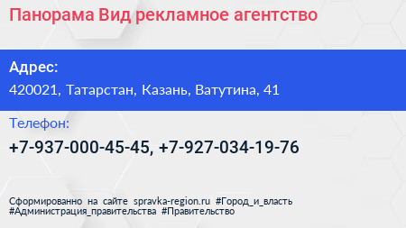 Панорама Вид, рекламное агентство по адресу 420021, Татарстан, Казань, Ватутина, 41 в дальнейшем Организация, размещена в следующих категориях: