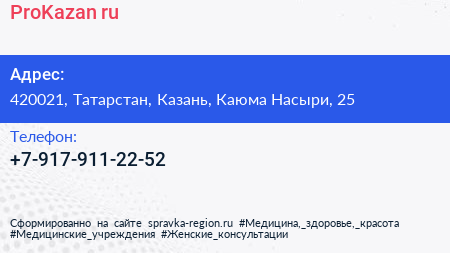 ProKazan.ru по адресу 420021, Татарстан, Казань, Каюма Насыри, 25 в дальнейшем Организация, размещена в следующих категориях: