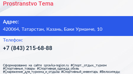 Prostranstvo Tema по адресу 420064, Татарстан, Казань, Баки Урманче, 10 в дальнейшем Организация, размещена в следующих категориях: